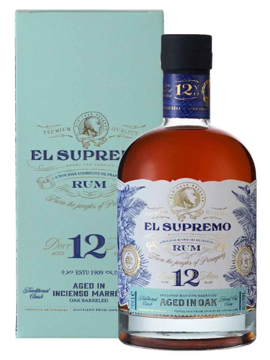 Born from over five centuries of craftsmanship, El Supremo 12 Years Old embodies Paraguay’s proud distilling heritage. Crafted from 100% virgin sugarcane honey and matured in rare Incienso Marrón and French oak casks, it delivers a truly distinctive flavour profile. Double cask ageing imparts warmth, depth, and refinement — a pure expression of Paraguayan terroir. Free from additives or colouring, this rum showcases authenticity and elegance in every sip.
