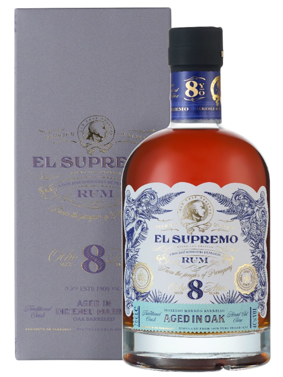 Crafted in Paraguay from 100% virgin sugarcane honey and aged in rare Incienso Marrón hardwood before finishing in French oak, El Supremo 8 Years Old is a refined expression of South American rum heritage. Naturally additive-free and static-aged for authenticity, it delivers a true single-origin character that honours centuries of craft.